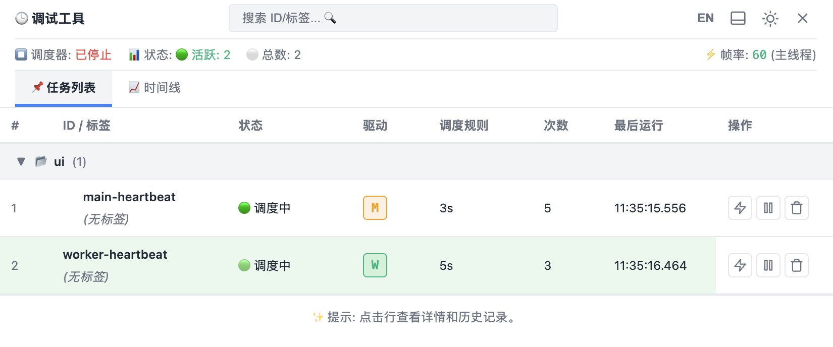 - 在任务列表中,任务 ID 旁会显示一个标记: